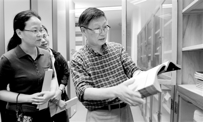 "你看,这是果亲王允礼点定印章,这套《唐宋元文约选》抄本很好,好好保存。"深圳图书馆古籍室陈列的数百种善本,沈津大致阅览一遍,就知道孰轻孰重。4月19日,版本目录学"国宝级"人物、中山大学图书馆特聘专家沈津来到深圳鉴定古籍,接受了本报记者的专访。
