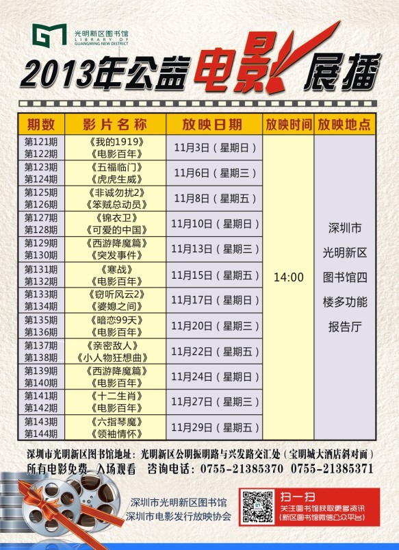 新区图书馆十月份公益电影展播