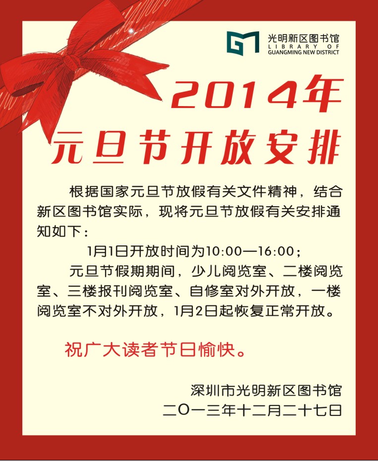 根据国家元旦节放假有关文件精神,结合新区图书馆实际,现将元旦节放假有关安排如下通知: