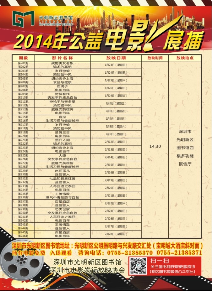 注:二月5日、二月6日电影播放时间提前到2点钟开始放映。