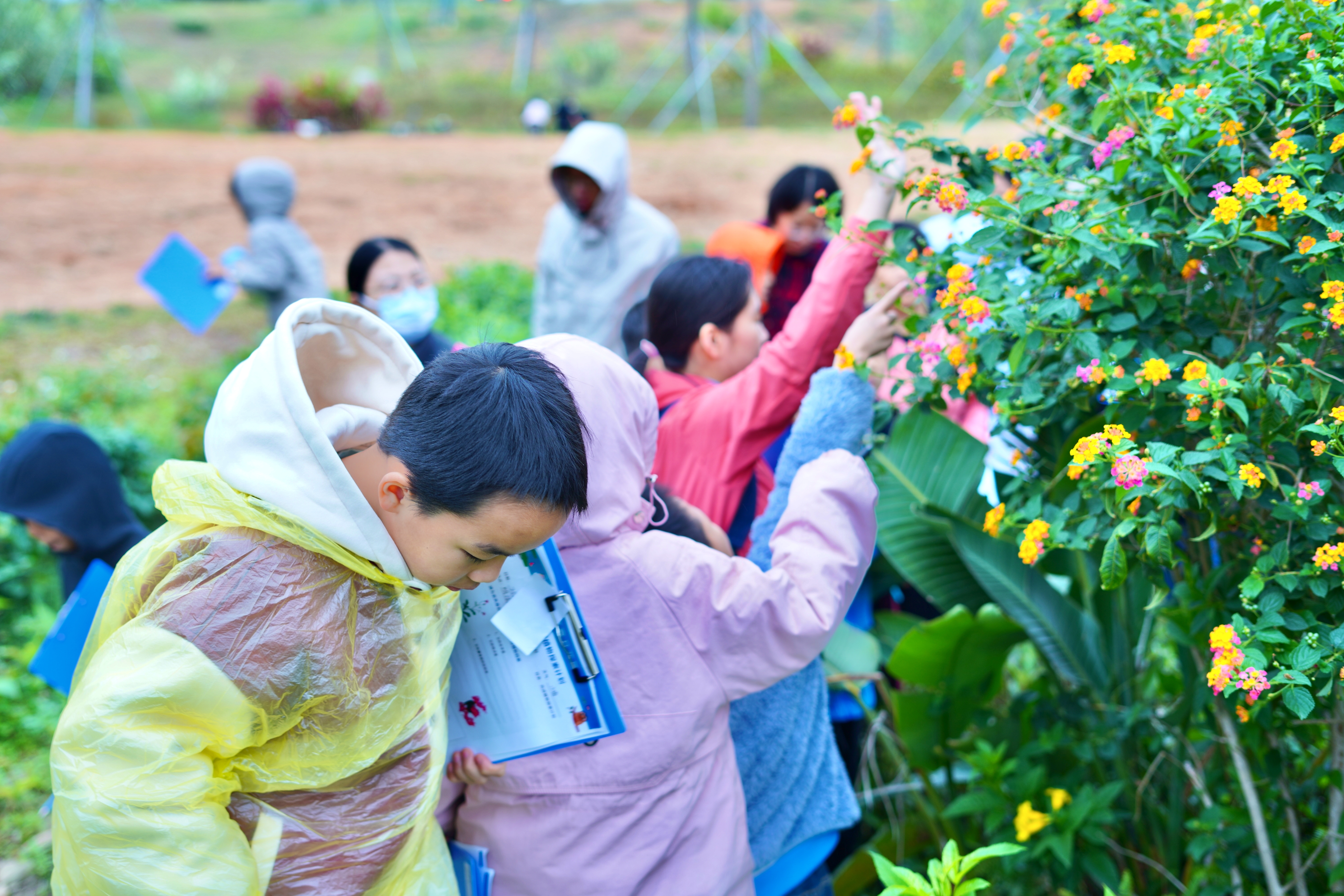 认读植物过程中,虽然天空时有细雨,科学小记者们依然热情高涨,跟随研究员认真观察、积极提问并做好记录。