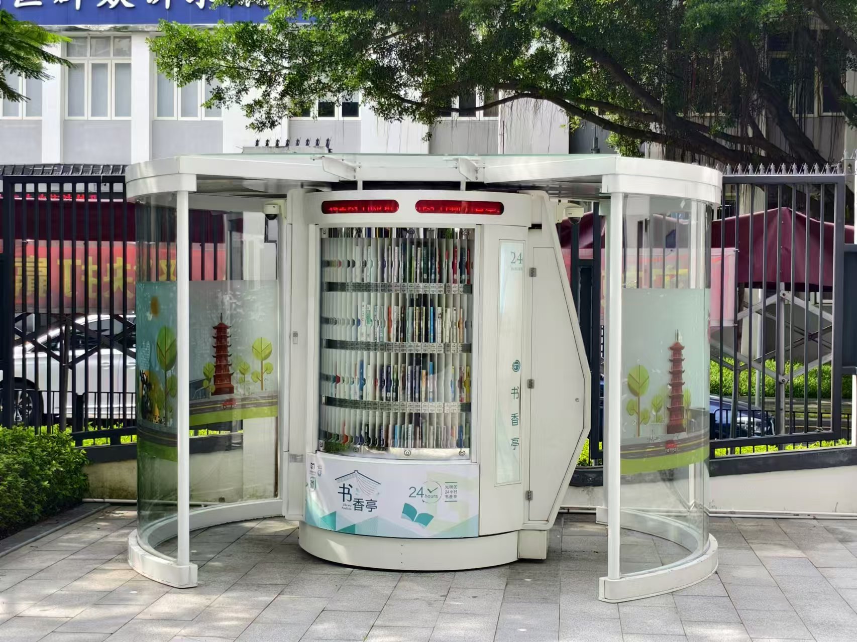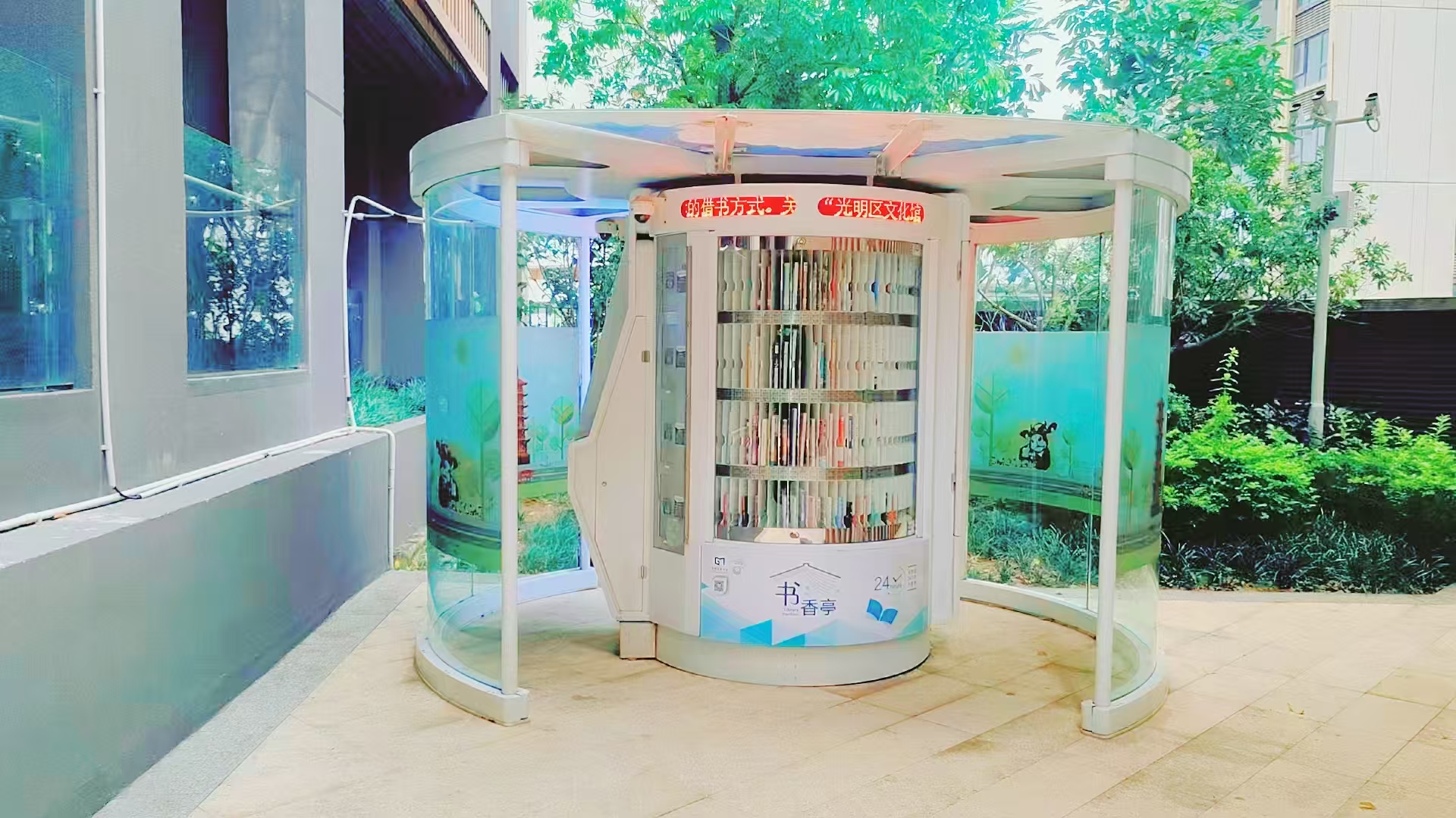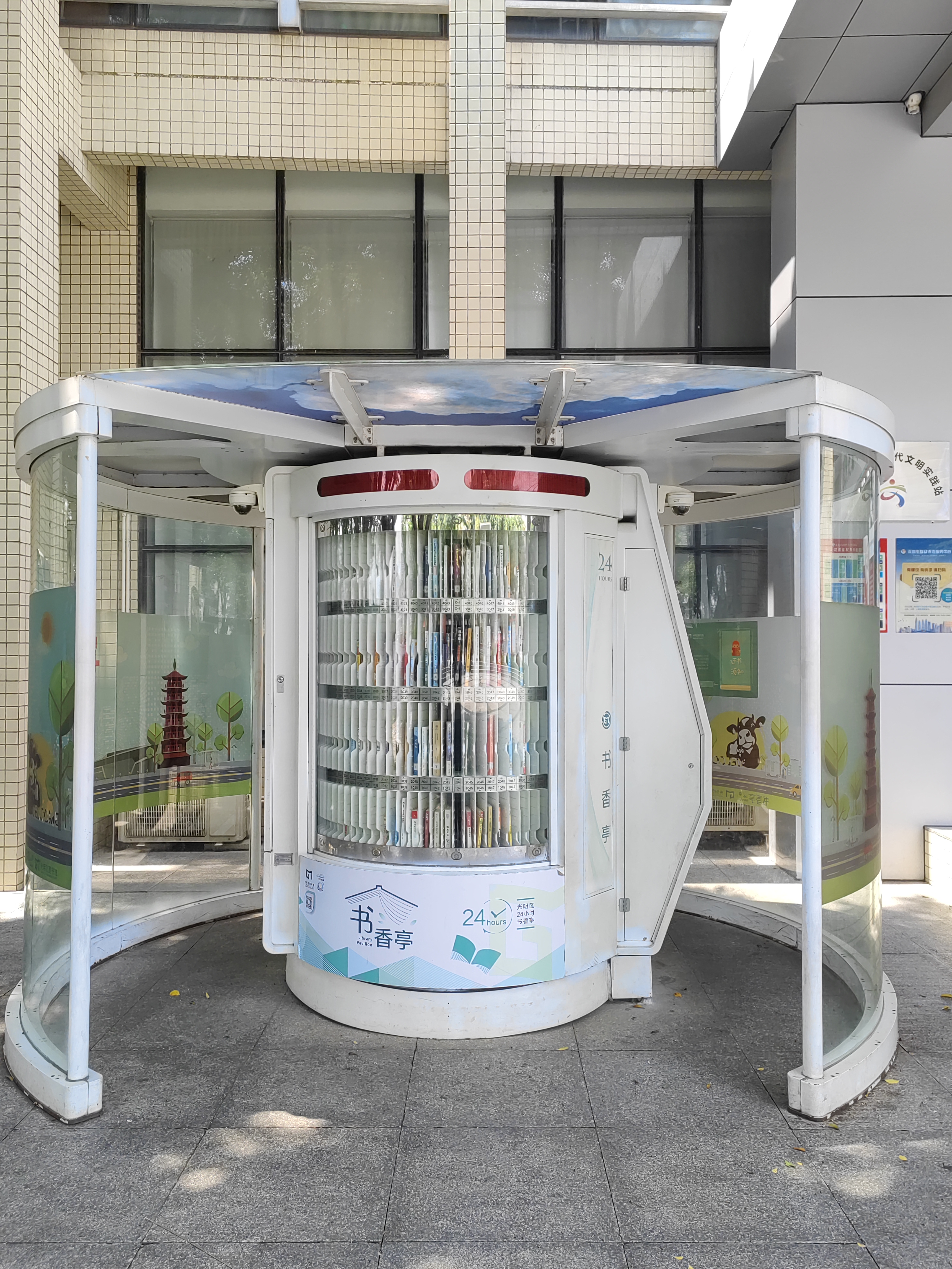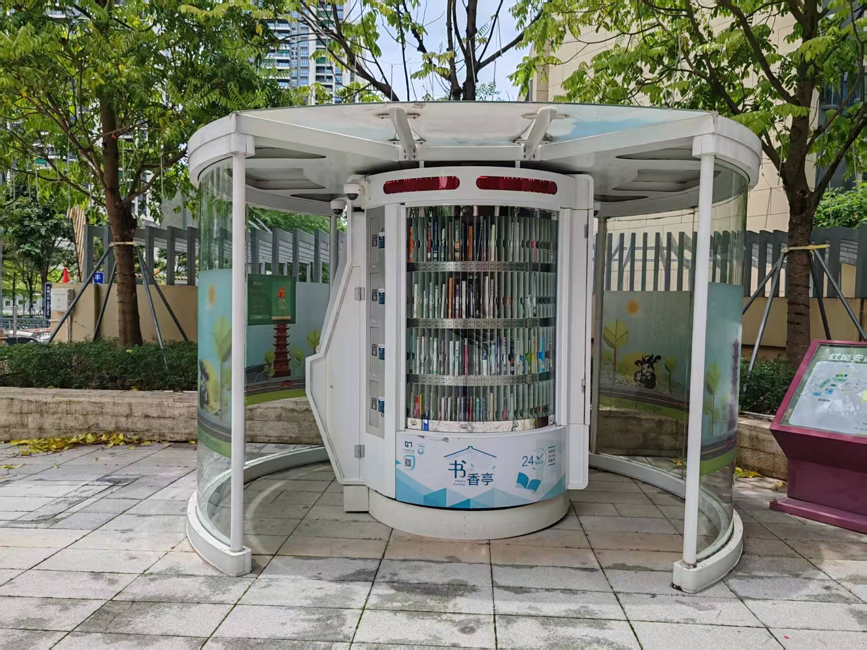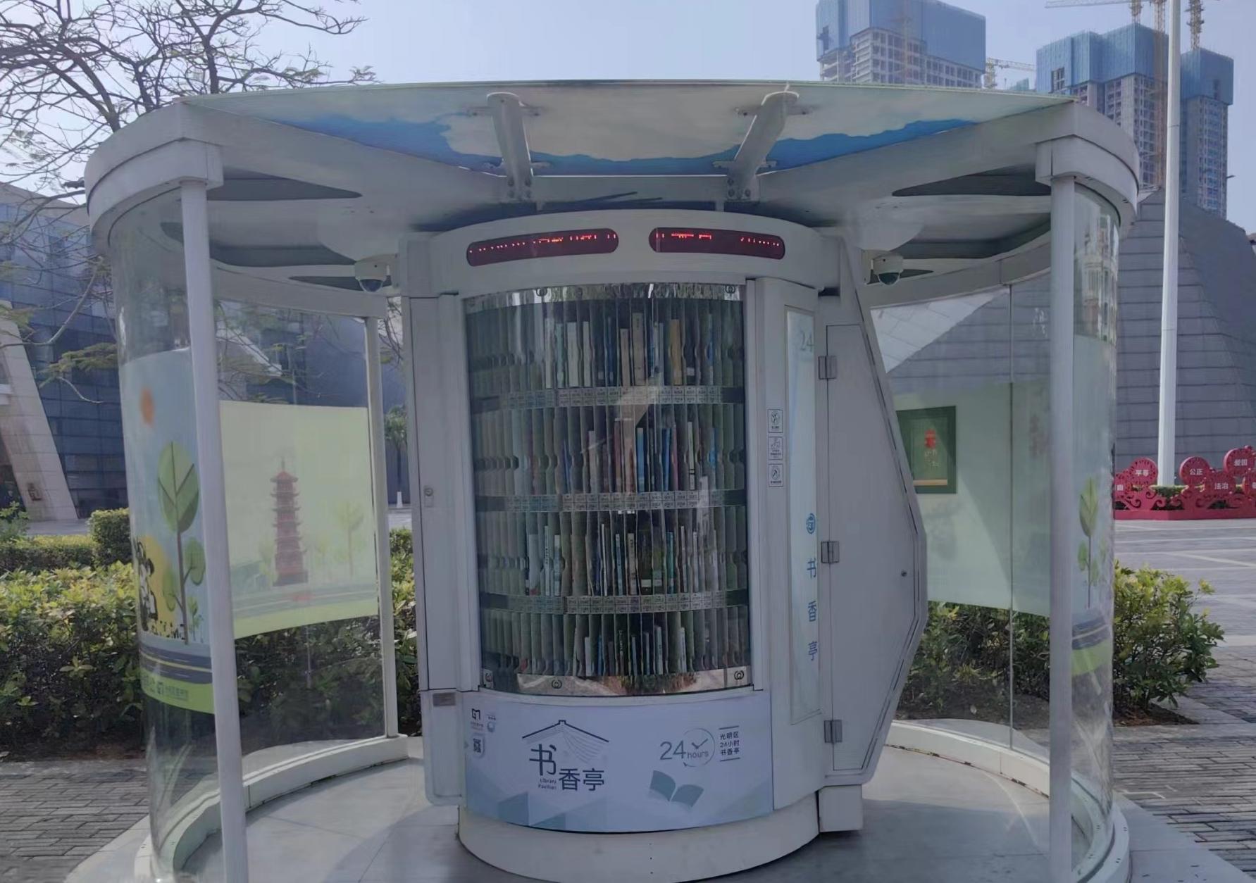 光明区24小时书香亭是光明区文化发展“十三五”规划(2016-2020)重点建设项目,是光明区公共文化服务体系的重要组成部分。书香亭主要布局于光明区各个居民小区、文体广场、公园、学校、产业园区、行政服务大厅、商业区等公共场所市民密集区域,是光明区市民便捷享受到自助、互联、24小时开放的借书、还书、申办读者证、预约取书等免费服务的文化设施,它让光明市民能享受到自助服务带来的“悦读”生活。