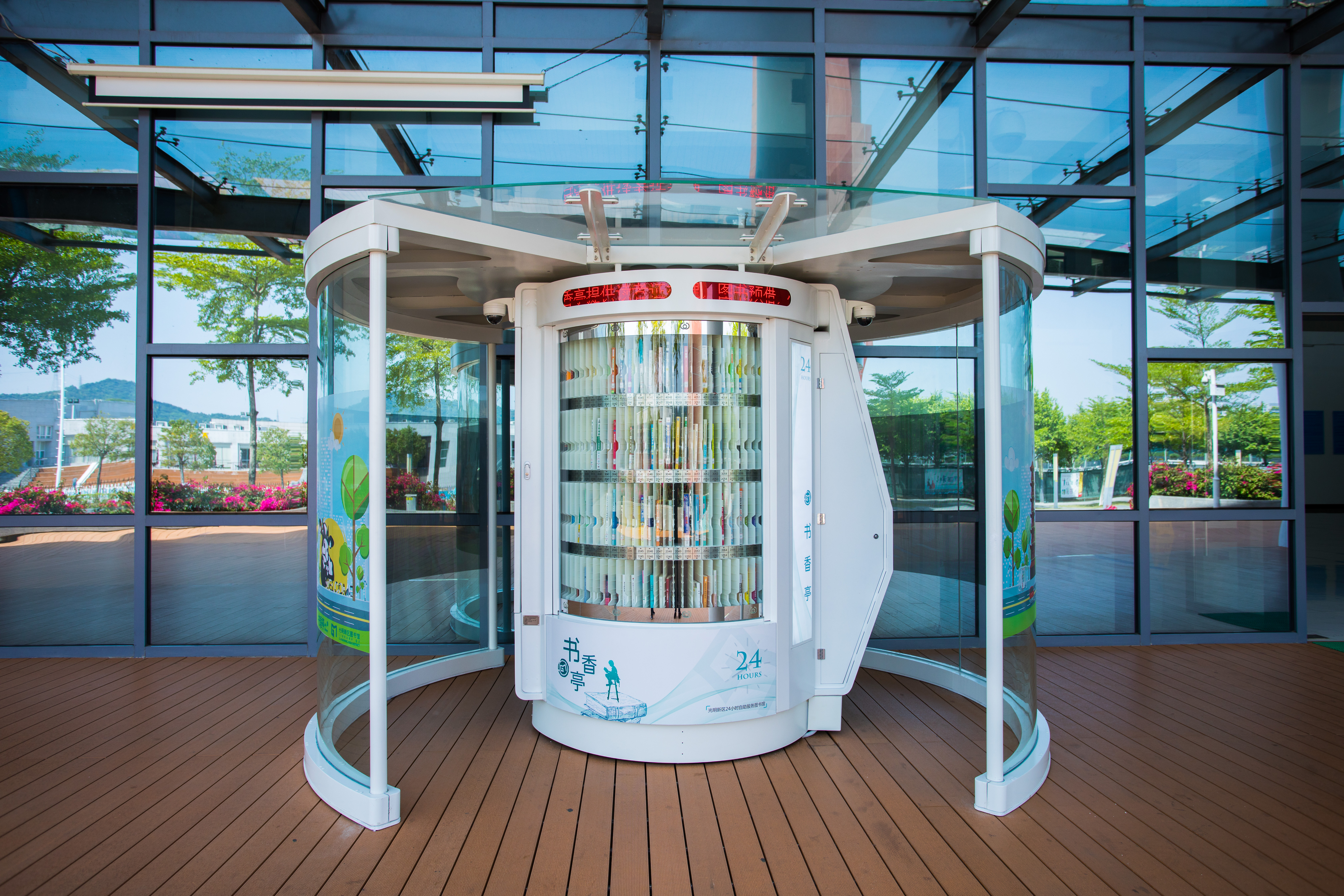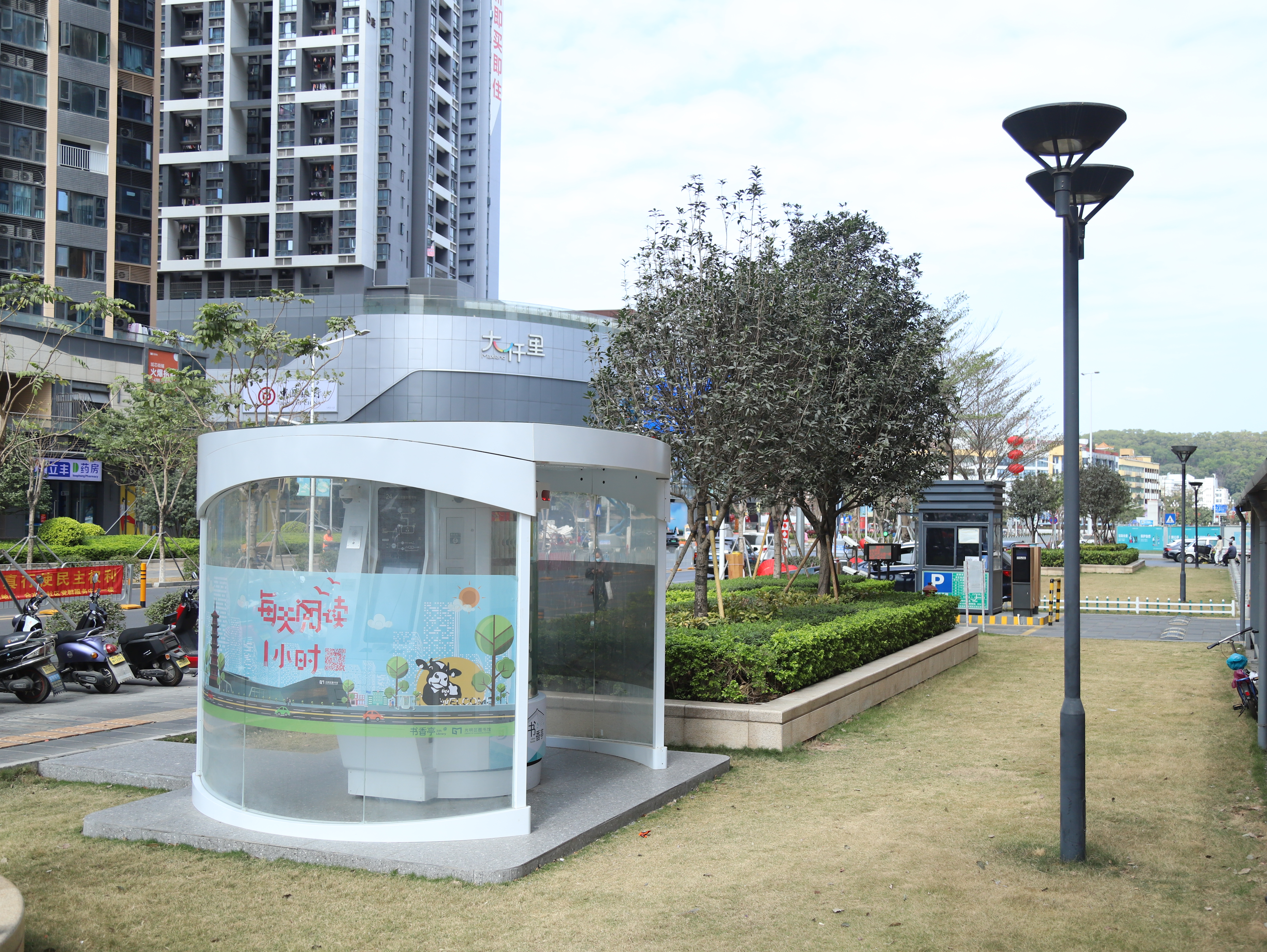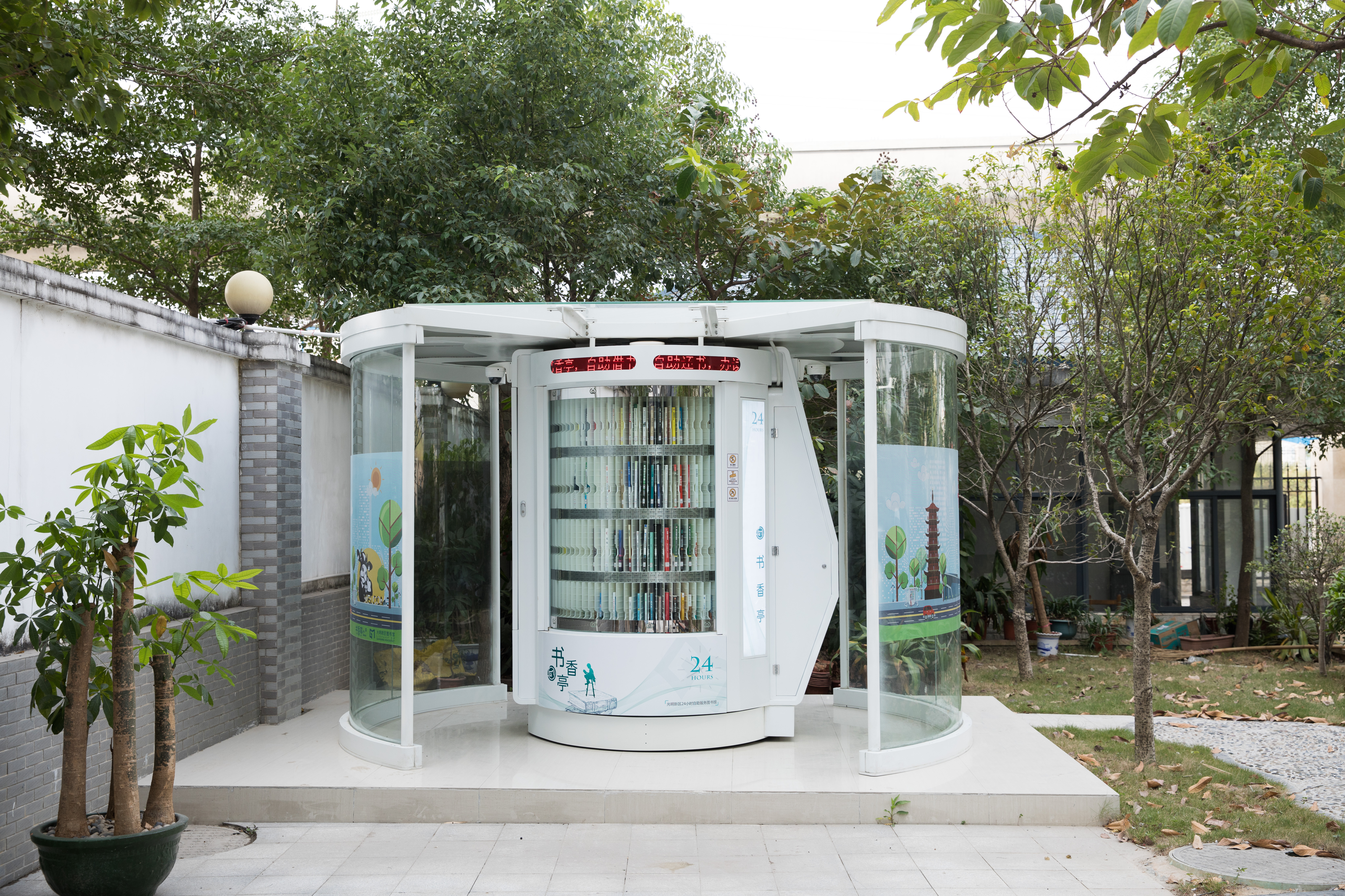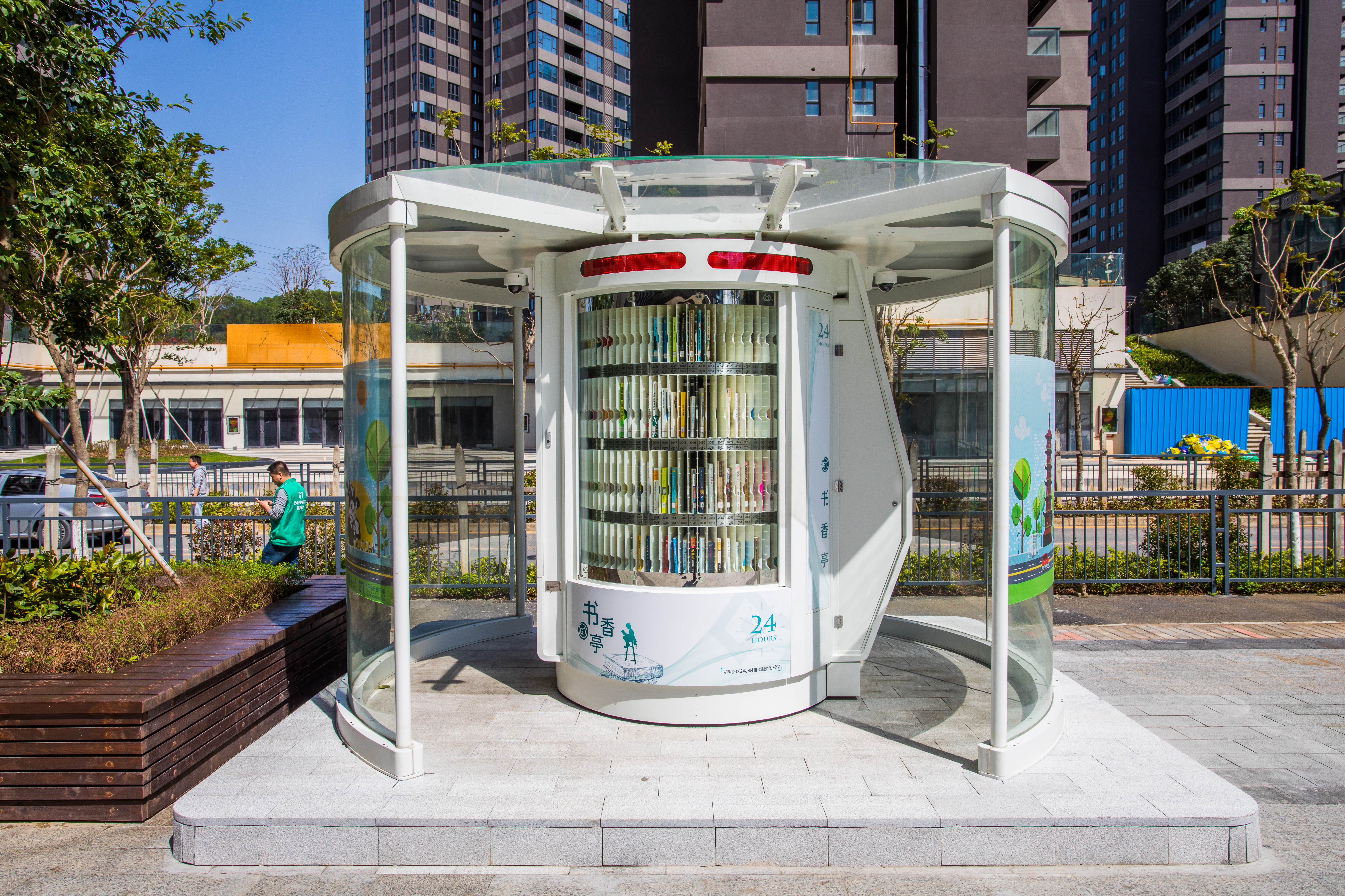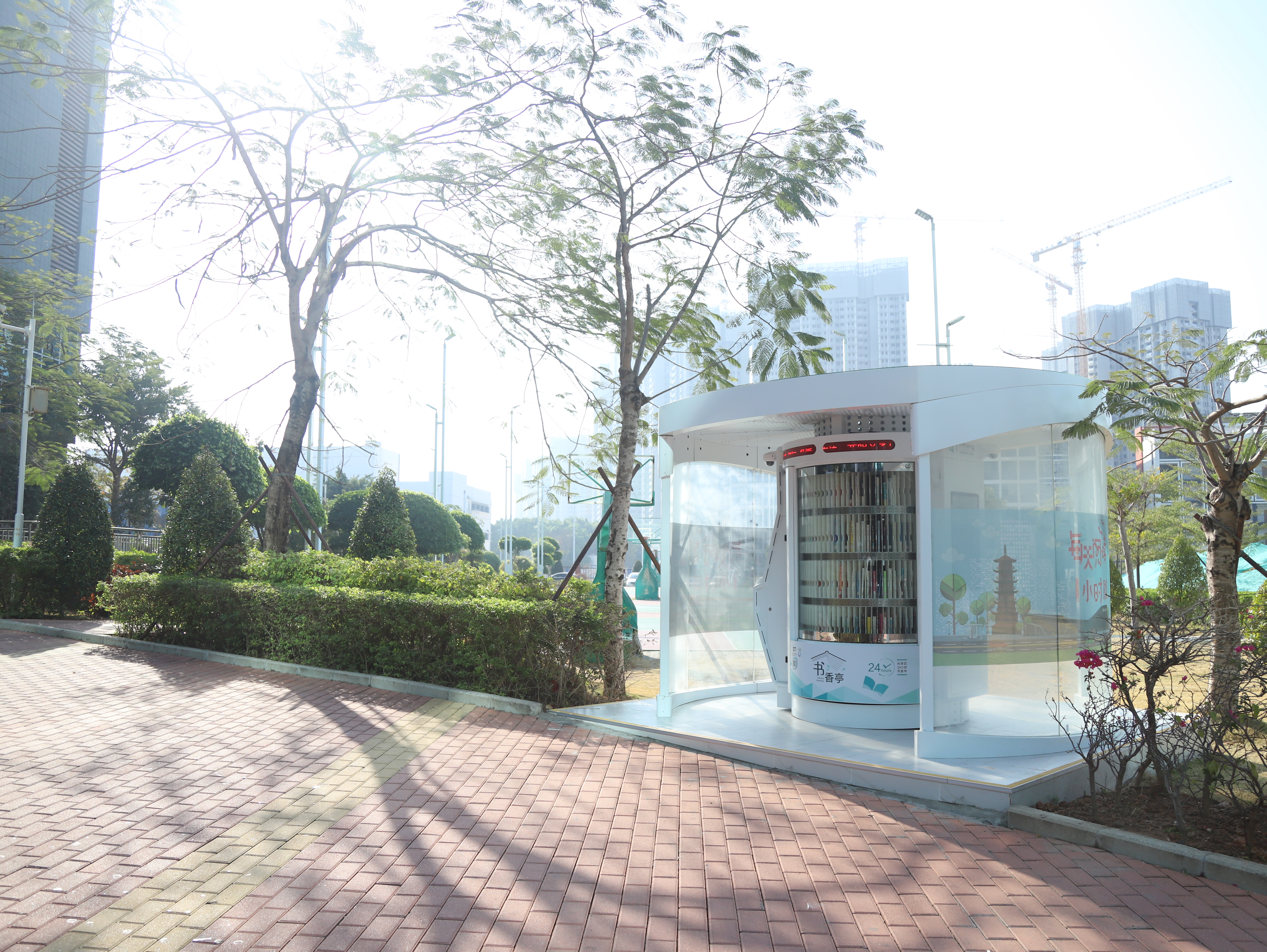 光明区24小时书香亭是光明区文化发展“十三五”规划(2016-2020)重点建设项目,是光明区公共文化服务体系的重要组成部分。书香亭主要布局于光明区各个居民小区、文体广场、公园、学校、产业园区、行政服务大厅、商业区等公共场所市民密集区域,是光明区市民便捷享受到自助、互联、24小时开放的借书、还书、申办读者证、预约取书等免费服务的文化设施,它让光明市民能享受到自助服务带来的“悦读”生活。