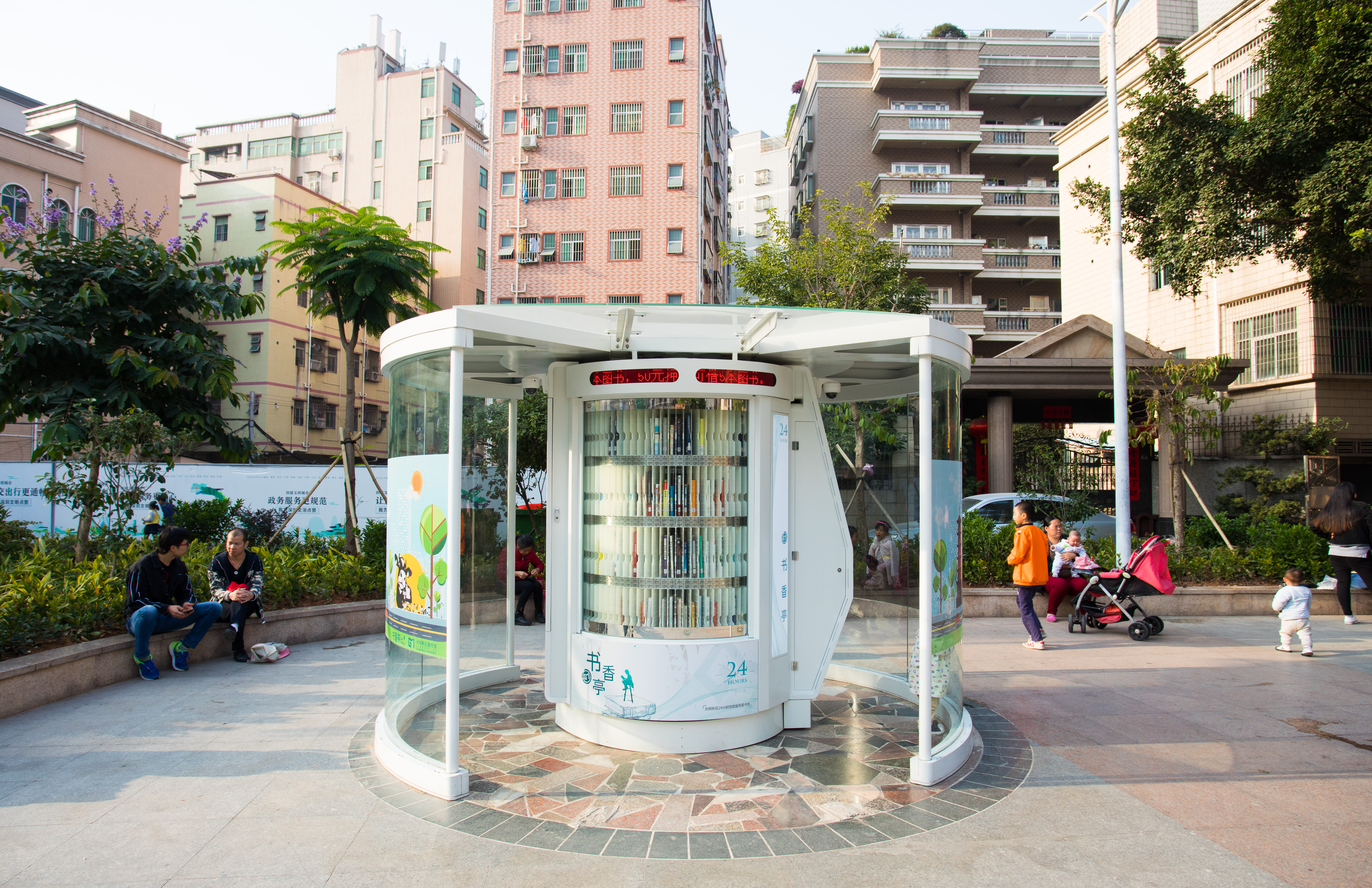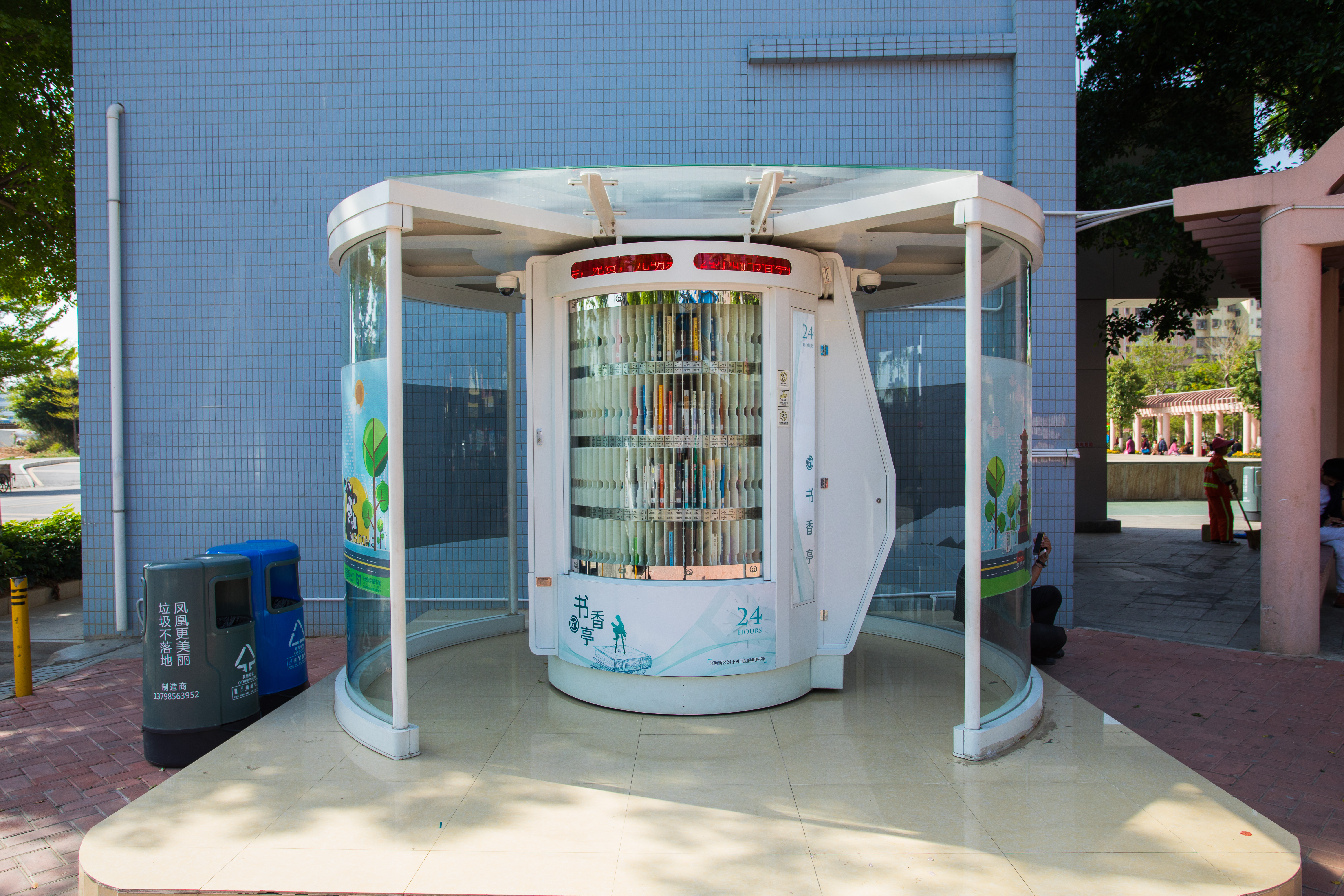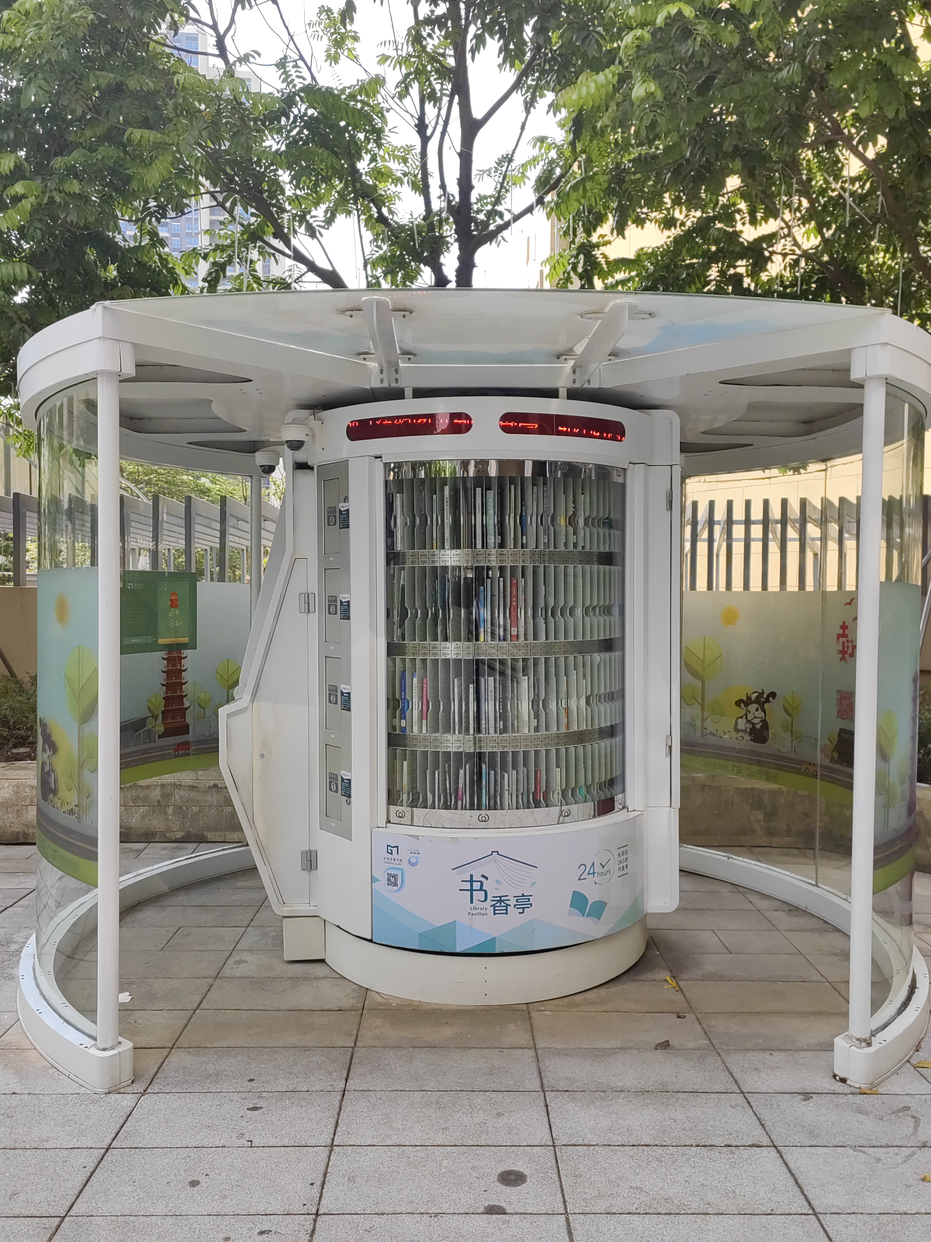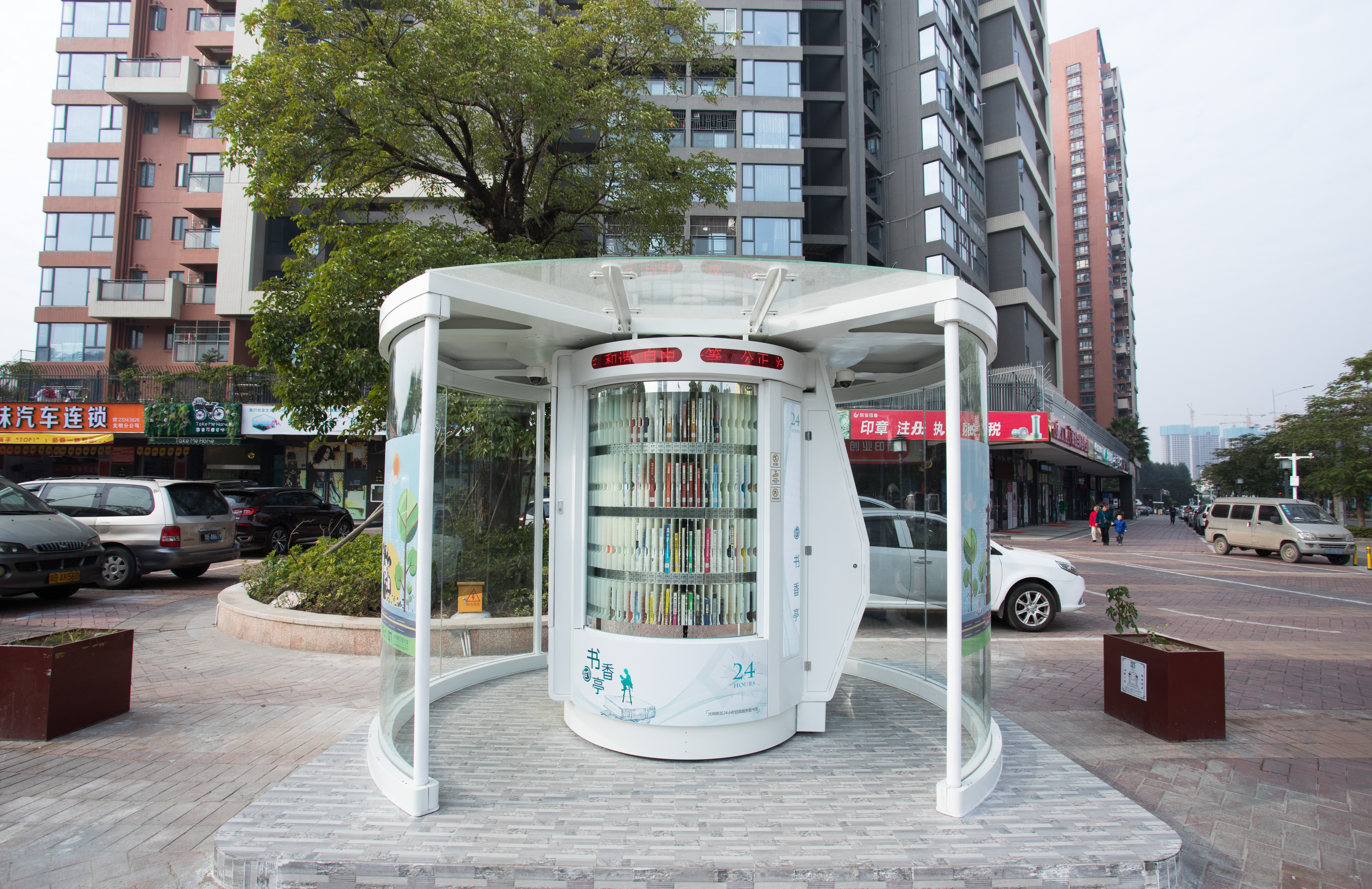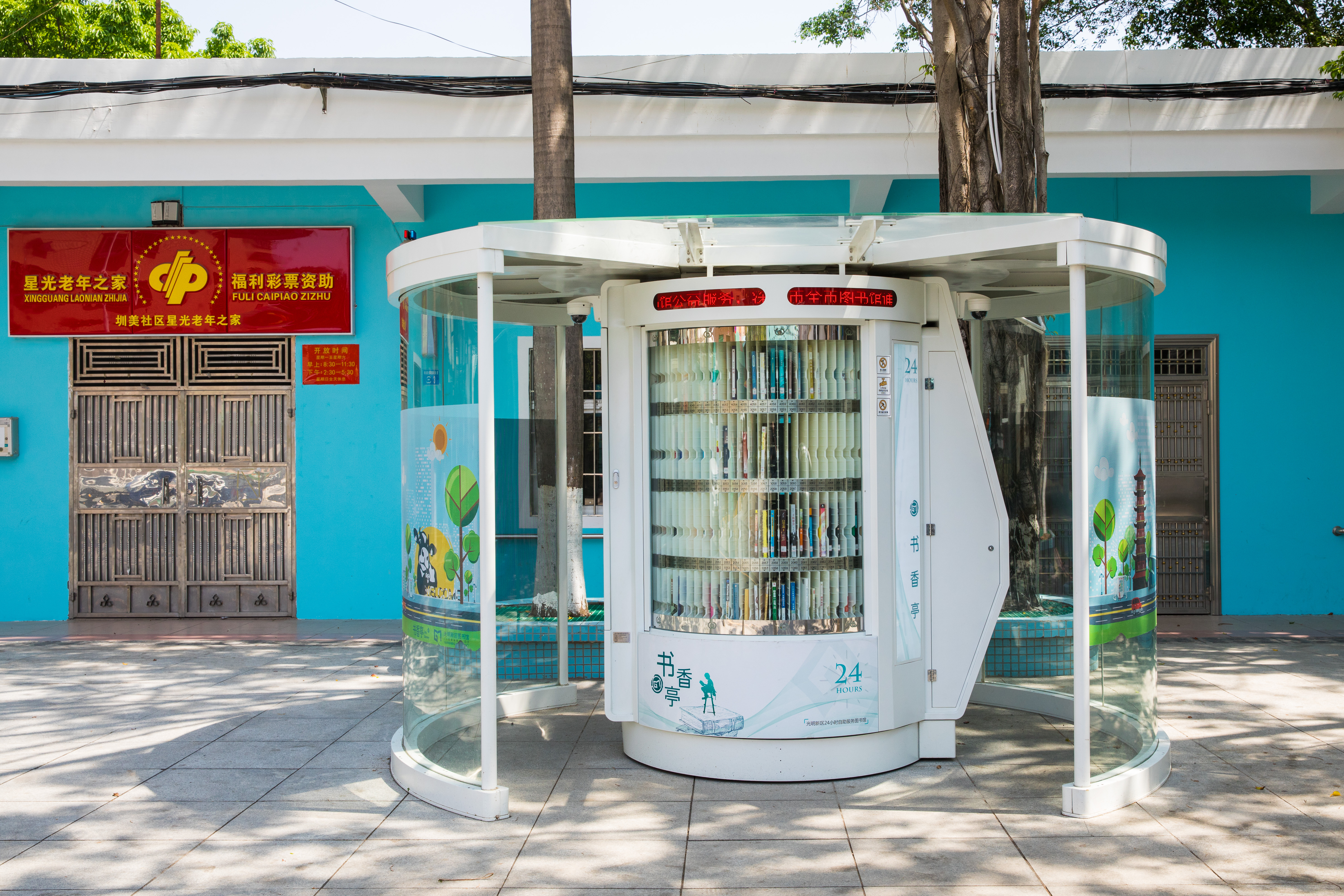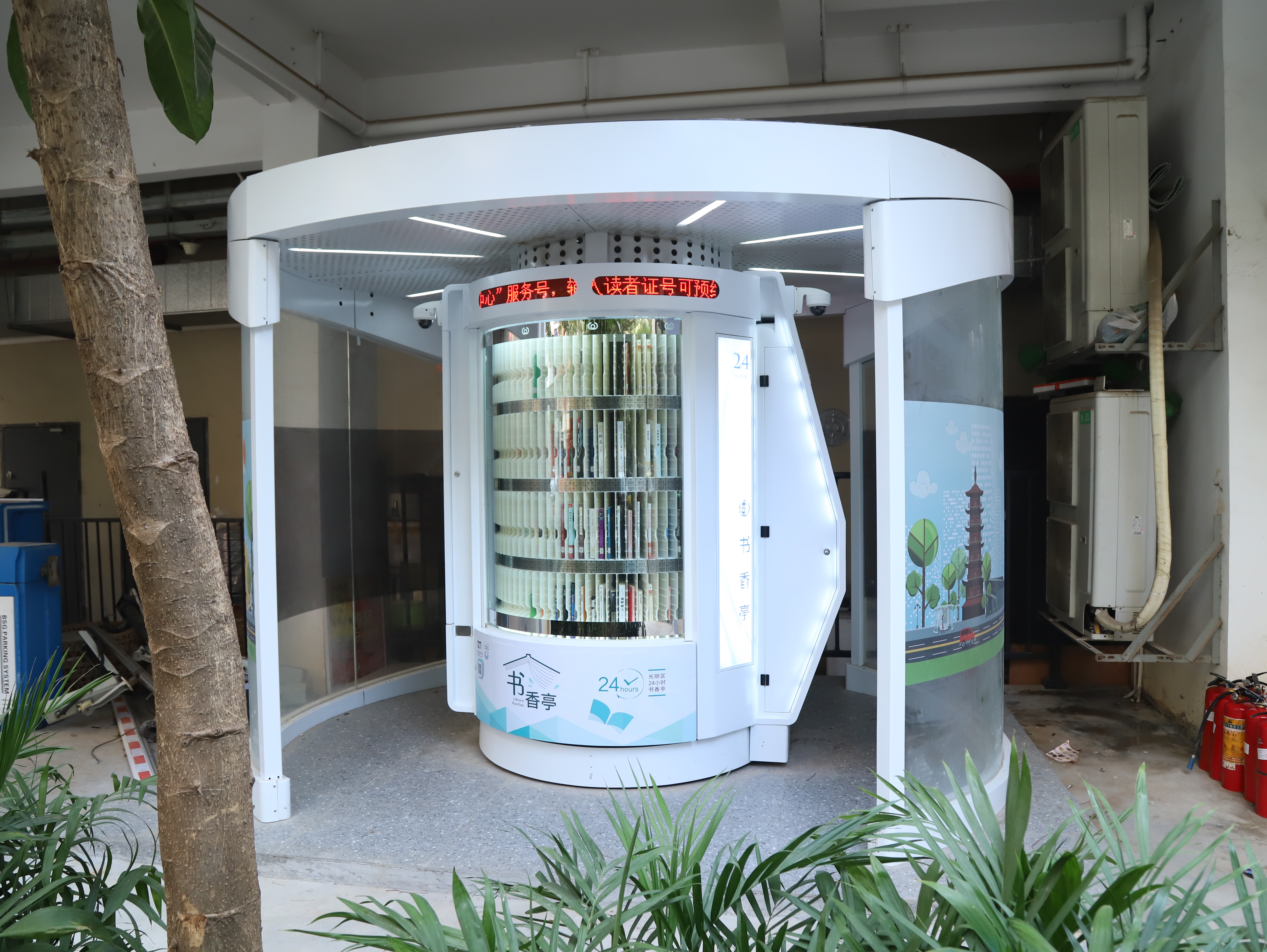 光明区24小时书香亭是光明区文化发展“十三五”规划(2016-2020)重点建设项目,是光明区公共文化服务体系的重要组成部分。书香亭主要布局于光明区各个居民小区、文体广场、公园、学校、产业园区、行政服务大厅、商业区等公共场所市民密集区域,是光明区市民便捷享受到自助、互联、24小时开放的借书、还书、申办读者证、预约取书等免费服务的文化设施,它让光明市民能享受到自助服务带来的“悦读”生活。