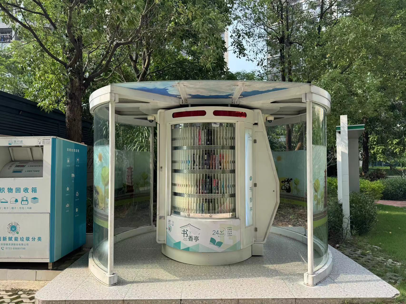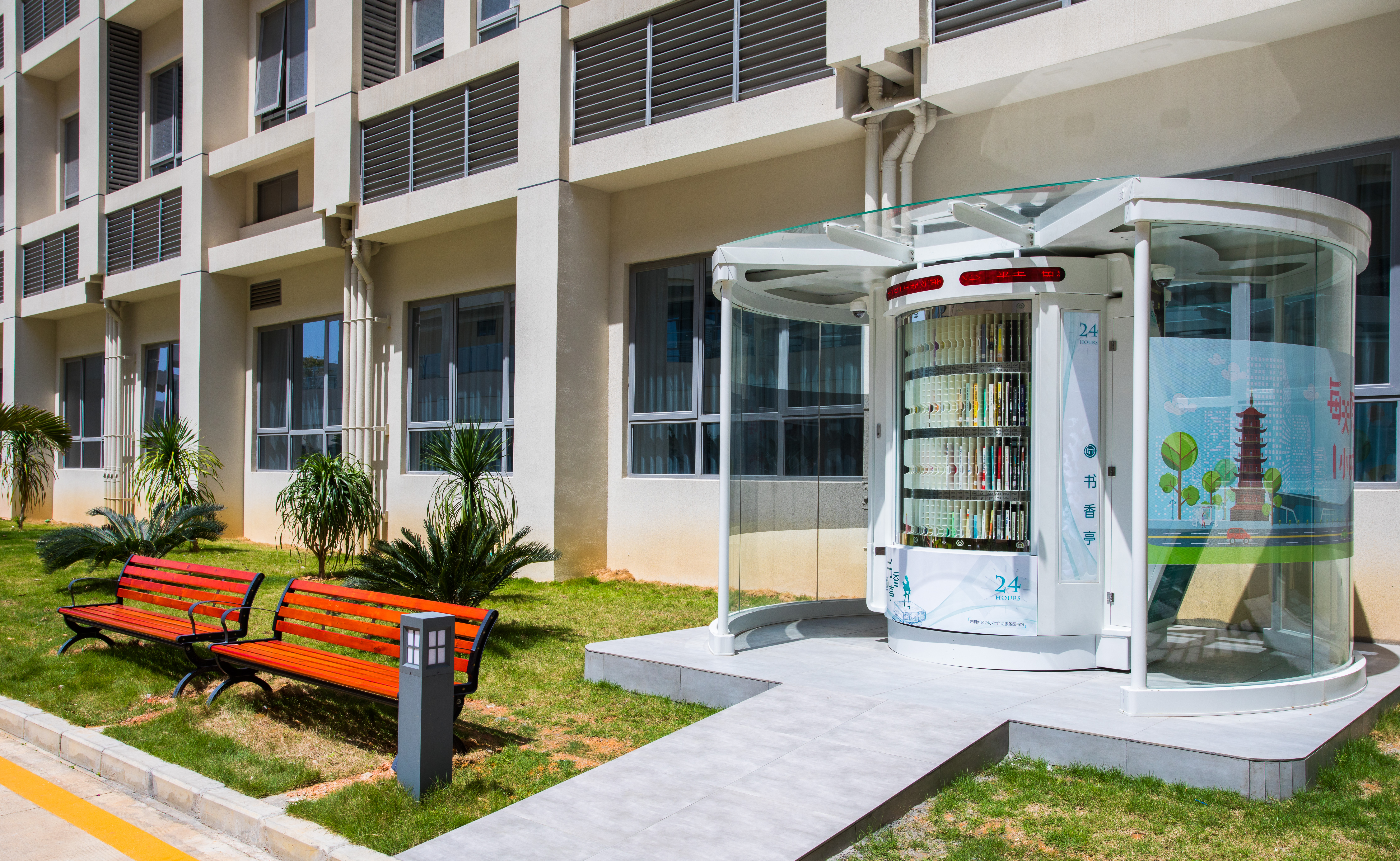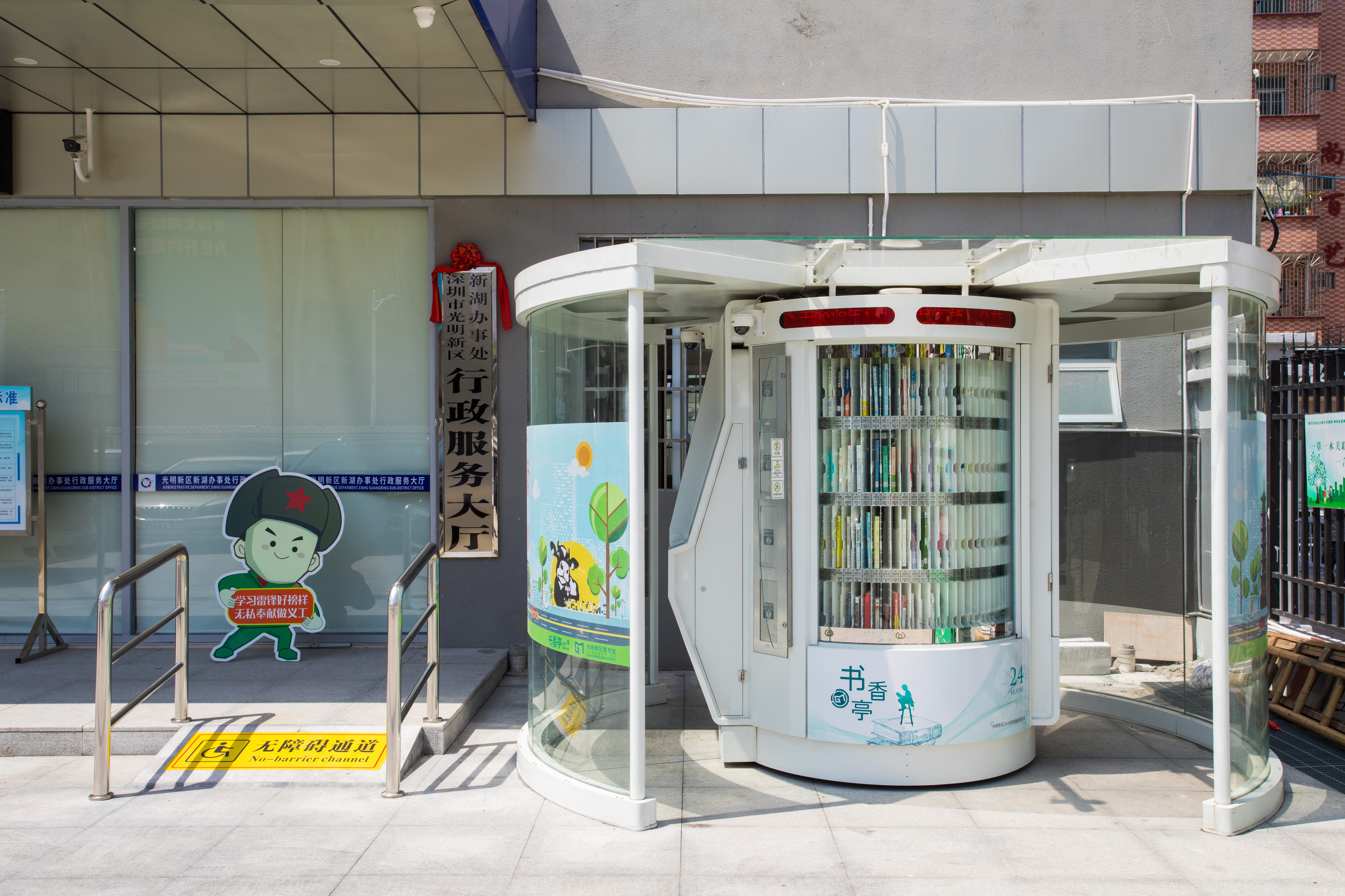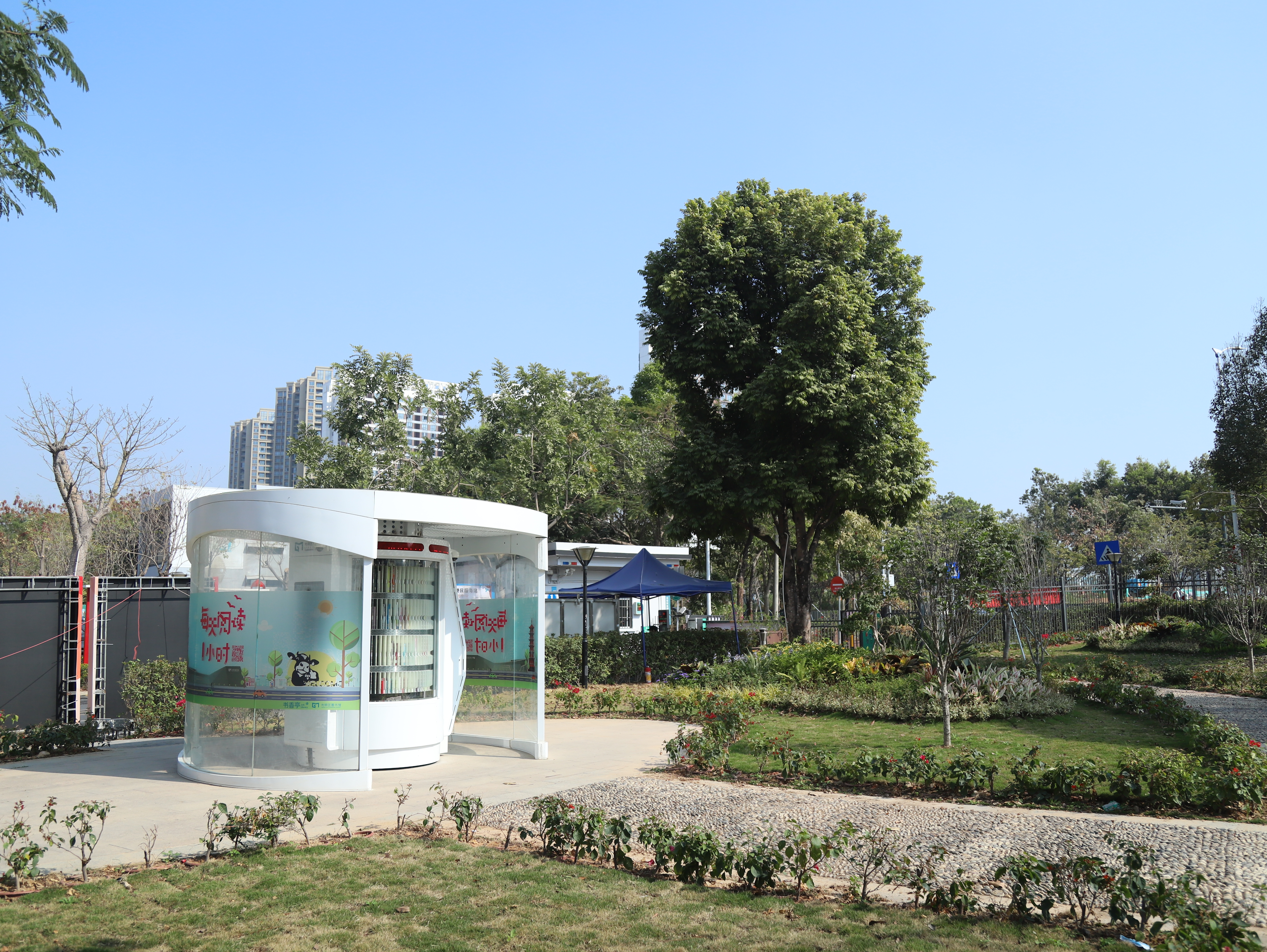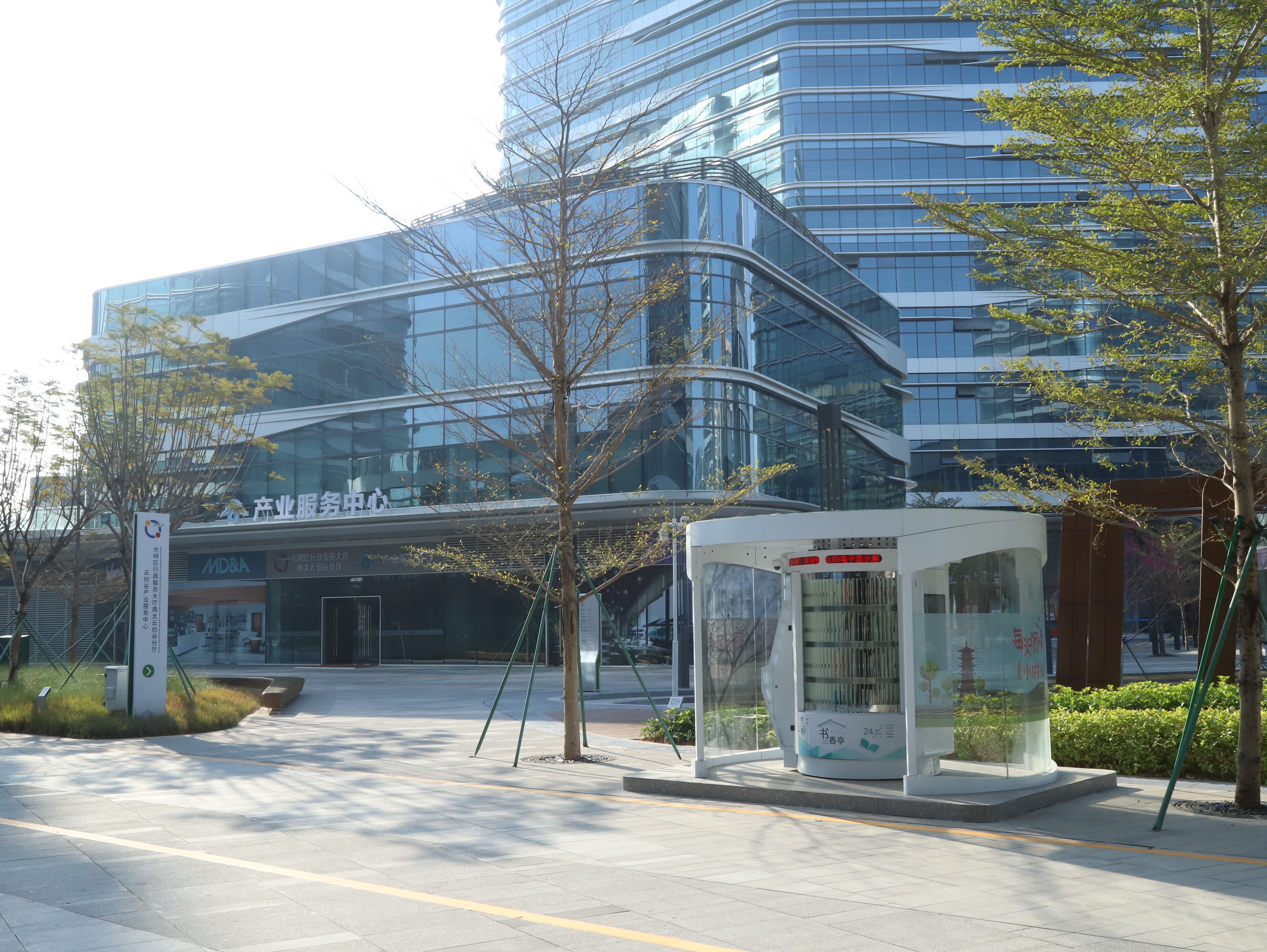 光明区24小时书香亭是光明区文化发展“十三五”规划(2016-2020)重点建设项目,是光明区公共文化服务体系的重要组成部分。书香亭主要布局于光明区各个居民小区、文体广场、公园、学校、产业园区、行政服务大厅、商业区等公共场所市民密集区域,是光明区市民便捷享受到自助、互联、24小时开放的借书、还书、申办读者证、预约取书等免费服务的文化设施,它让光明市民能享受到自助服务带来的“悦读”生活。