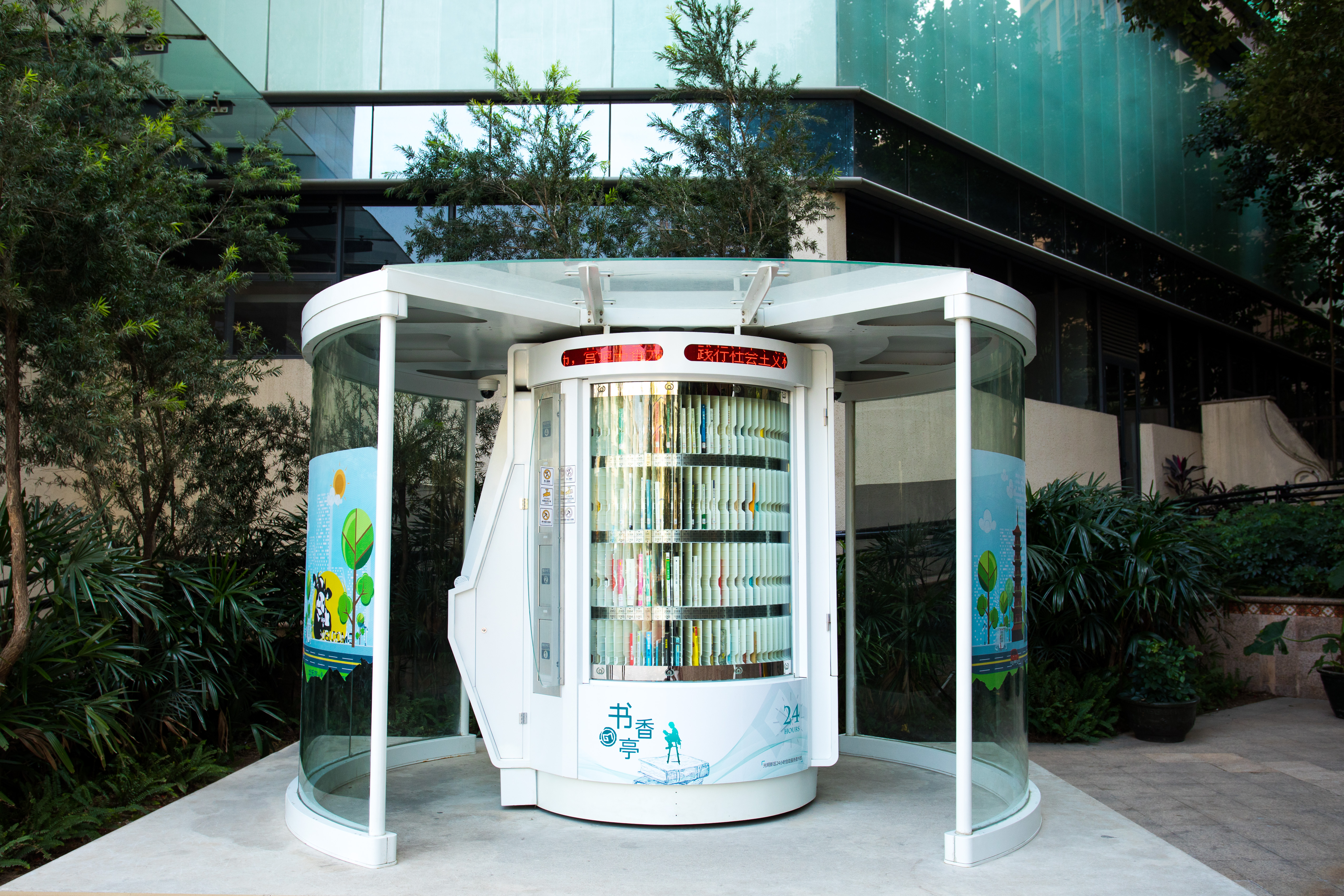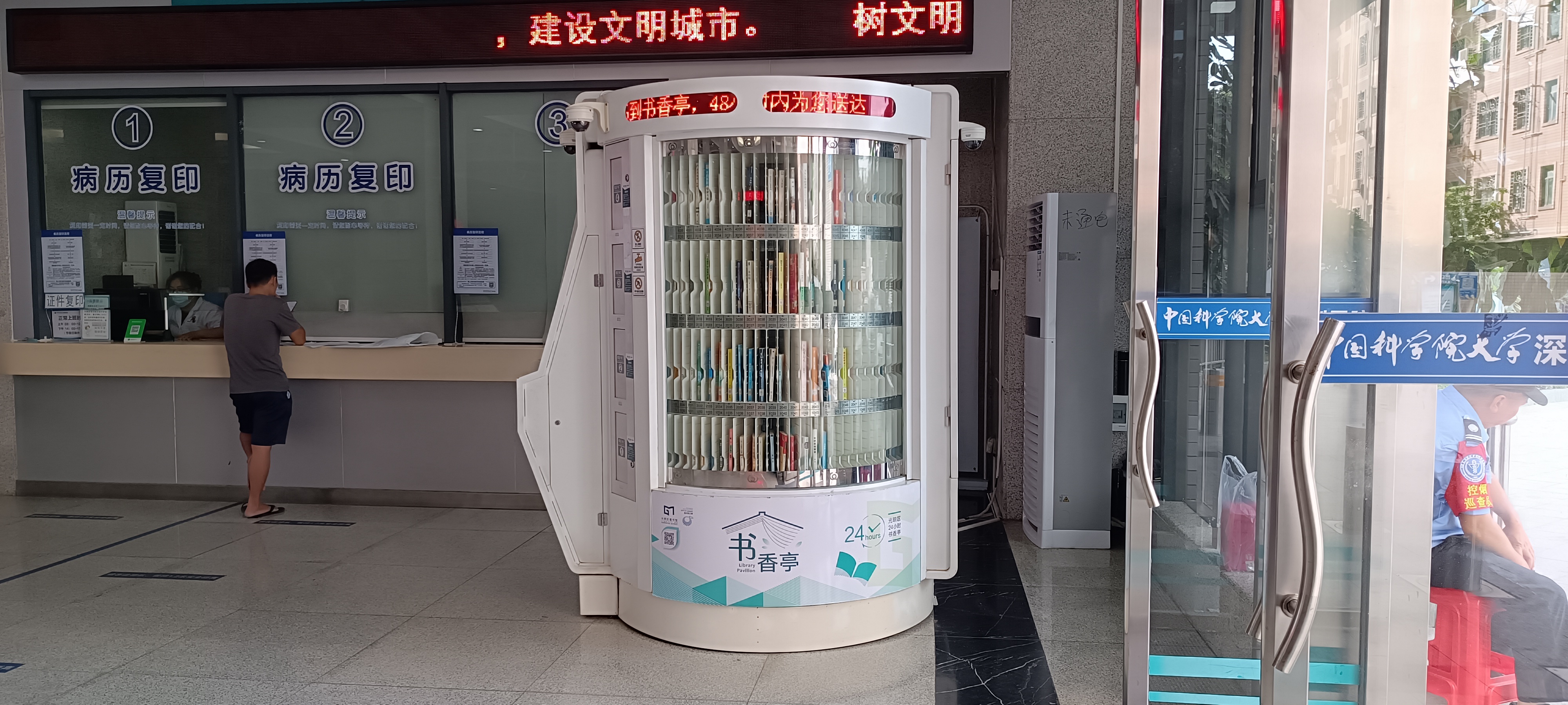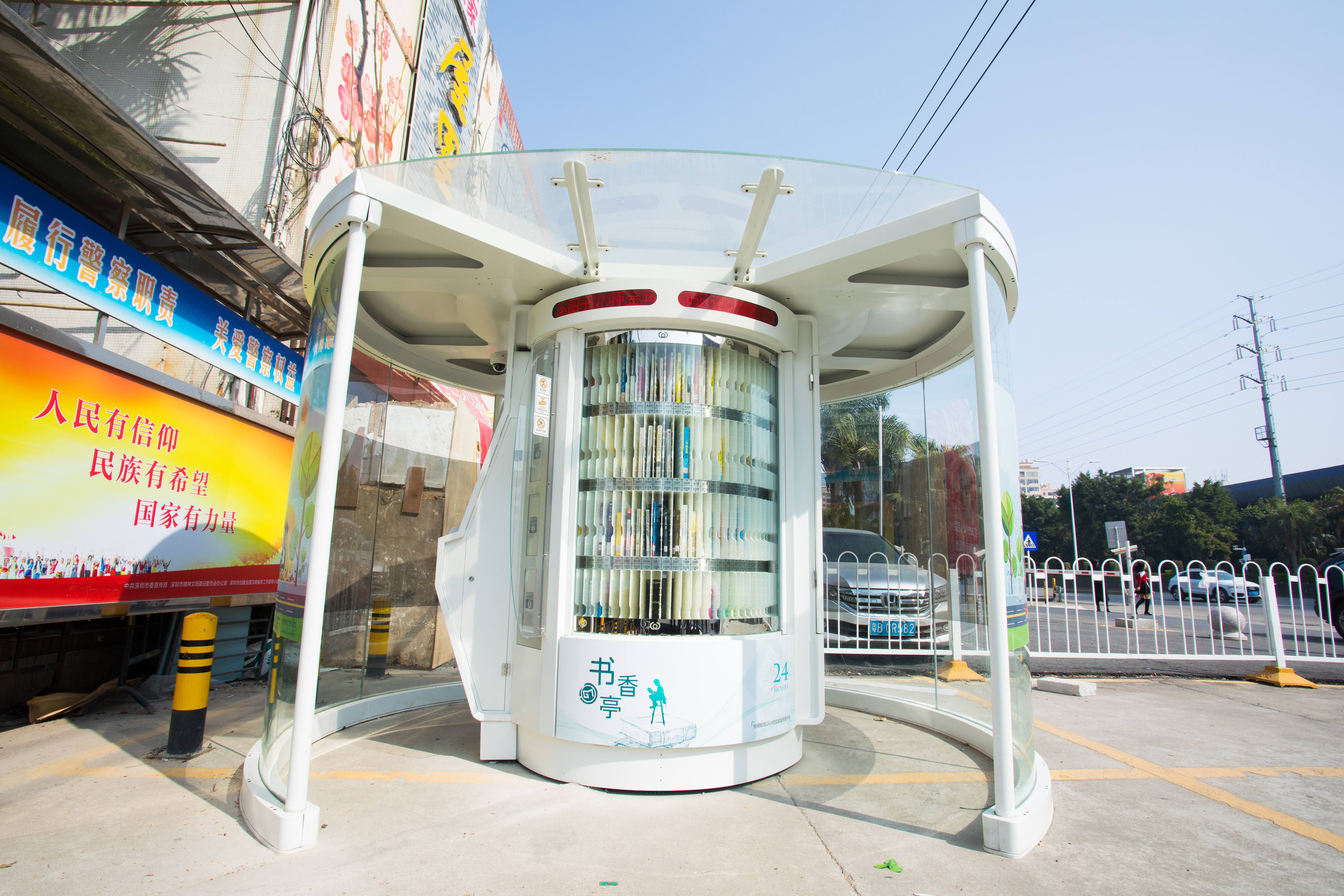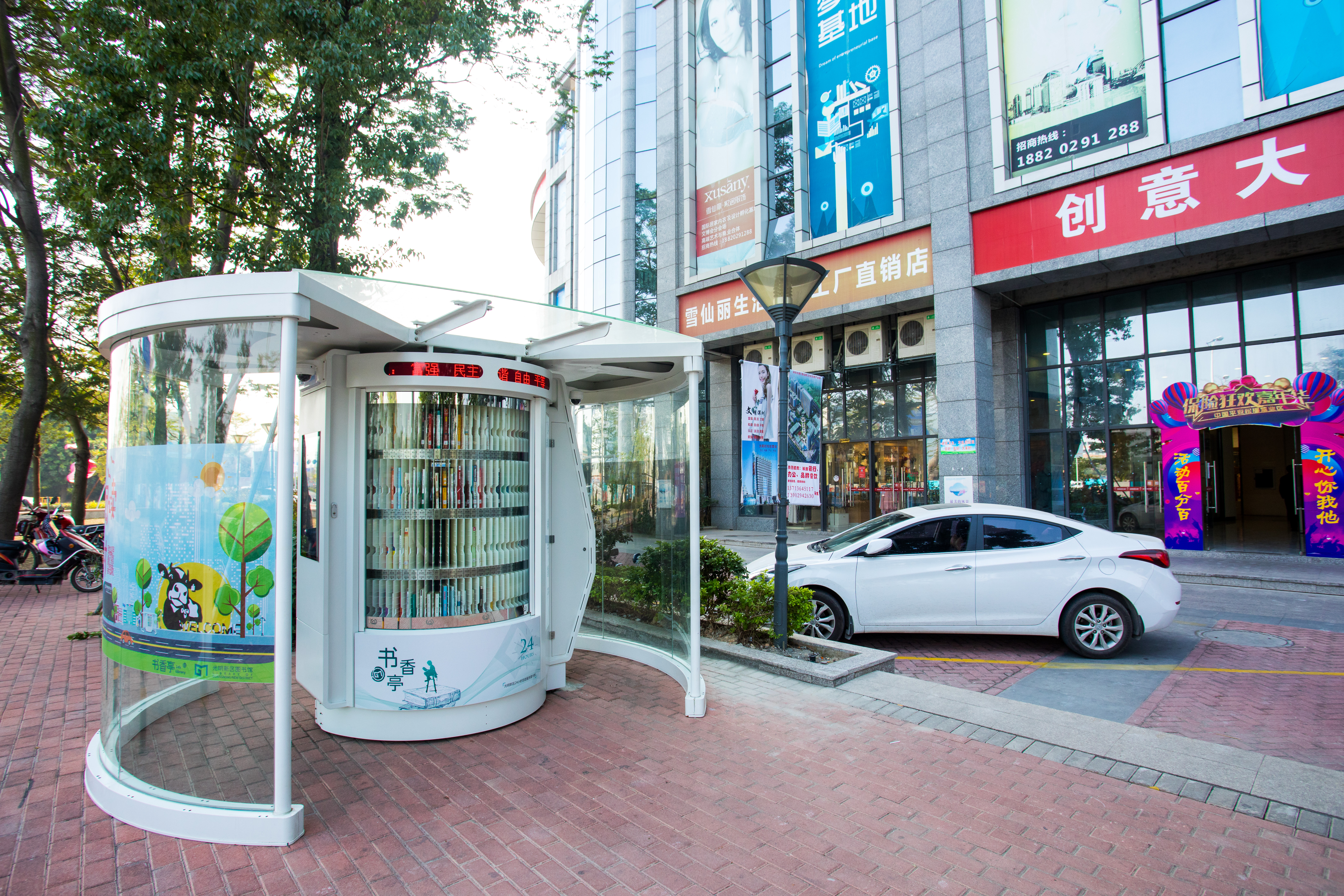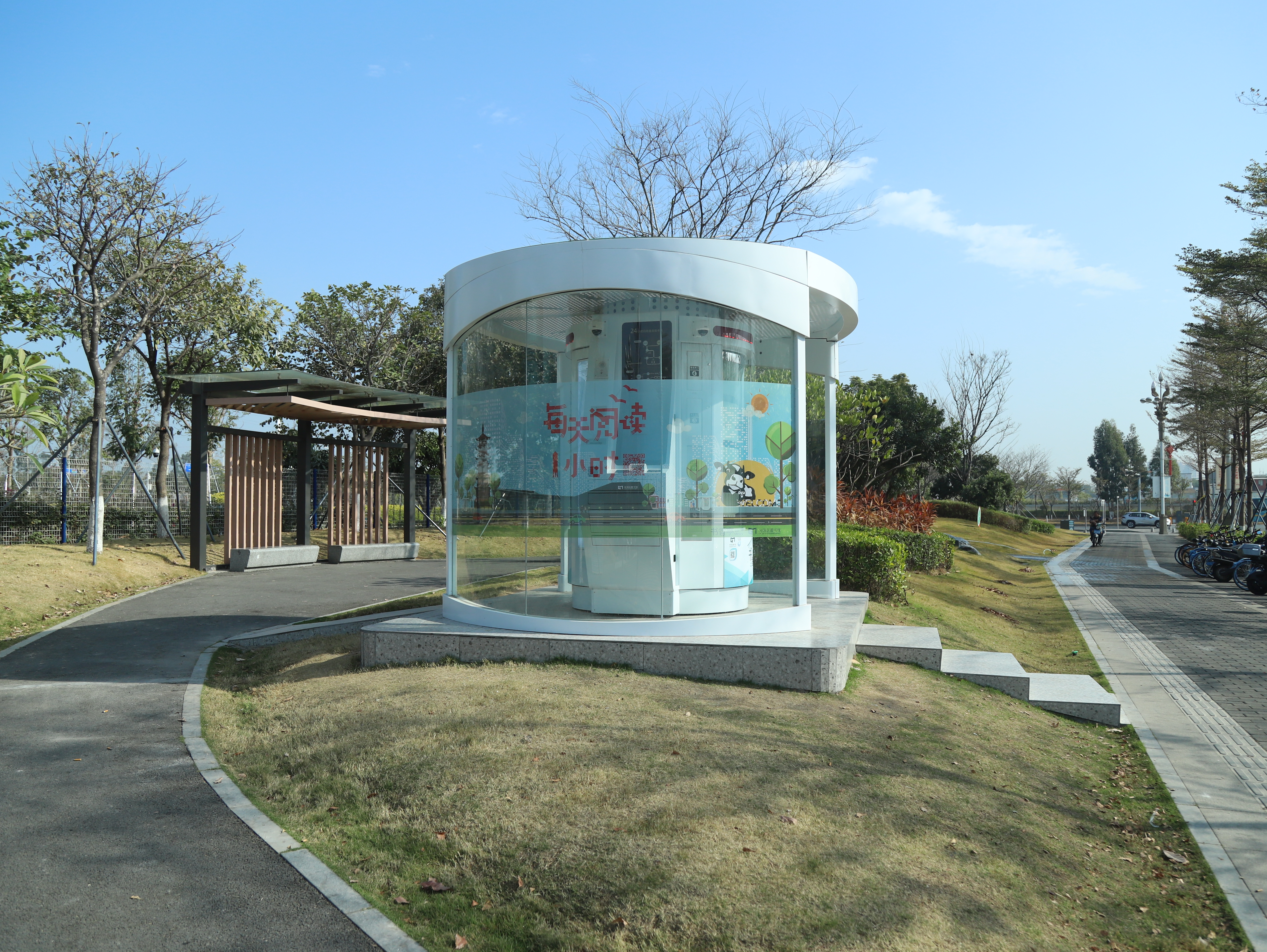 光明区24小时书香亭是光明区文化发展“十三五”规划(2016-2020)重点建设项目,是光明区公共文化服务体系的重要组成部分。书香亭主要布局于光明区各个居民小区、文体广场、公园、学校、产业园区、行政服务大厅、商业区等公共场所市民密集区域,是光明区市民便捷享受到自助、互联、24小时开放的借书、还书、申办读者证、预约取书等免费服务的文化设施,它让光明市民能享受到自助服务带来的“悦读”生活。